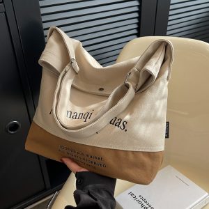 Canvas bag women’s large capacity new style contrasting color summer single shoulder crossbody bag popular commuter tote bag
