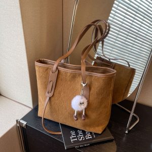New Autumn and Winter Versatile Shoulder Bag Frosted College Student Commuting Tote Bag for Women Color: Brown with pendant Style: street trend Length (cm) 33 Width (cm) 12 Height (cm) Volume(cm³)9108